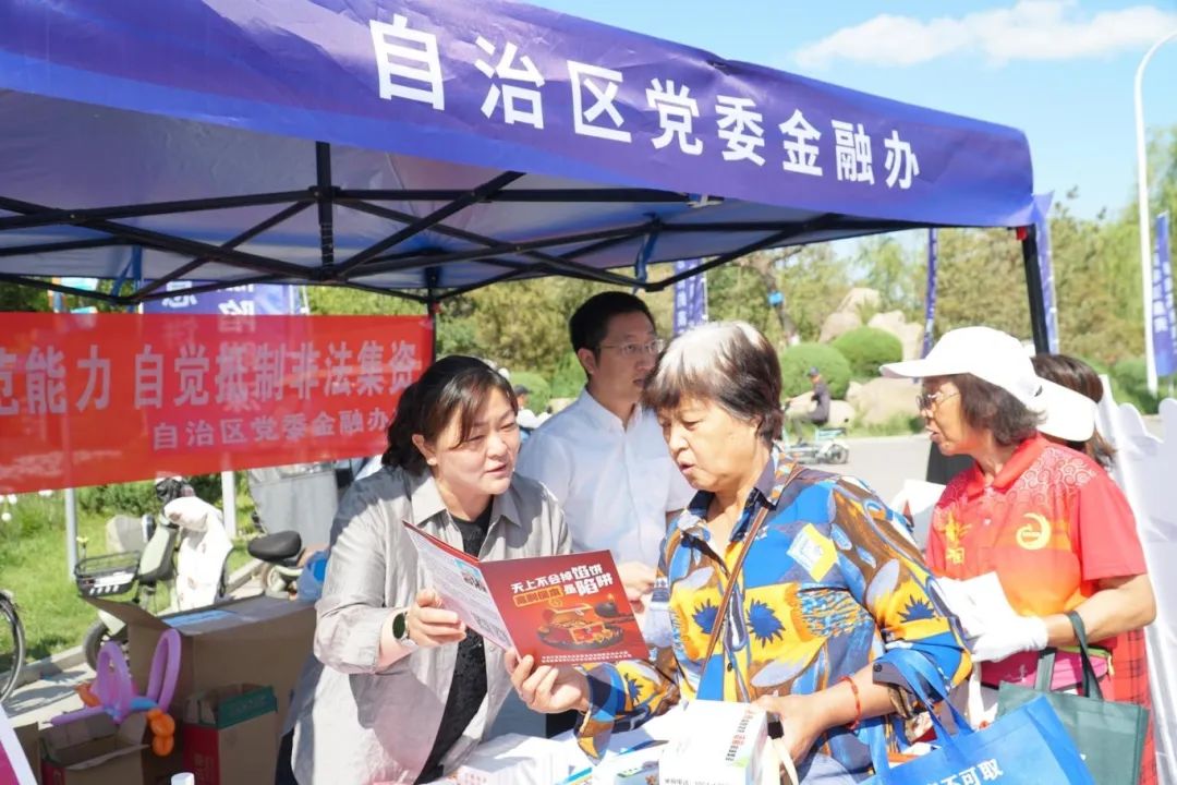 6月15日上午,银川市海宝公园内人头攒动。一场以“守住钱袋子 护好幸福家”为主题的防范非法金融活动集中宣传日活动正在进行。此次活动由自治区党委金融办主办,自治区有关部门、金融机构、高等院校等78家单位共同参与。