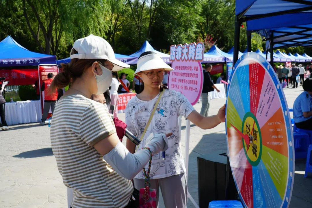 活动现场,金融知识有奖竞答区吸引群众踊跃参与。市民王阿姨正确回答出“如何识别非法集资”问题后,高兴地领取了主题纪念品;不远处的互动体验区,工作人员一边引导群众进行“防非大转盘”游戏,一边向参与者讲解金融诈骗、传销等非法金融活动骗术和手法;文艺演出舞台上,宁夏坐唱节目《防非三句半》接地气的表演,博得台下观众阵阵掌声。